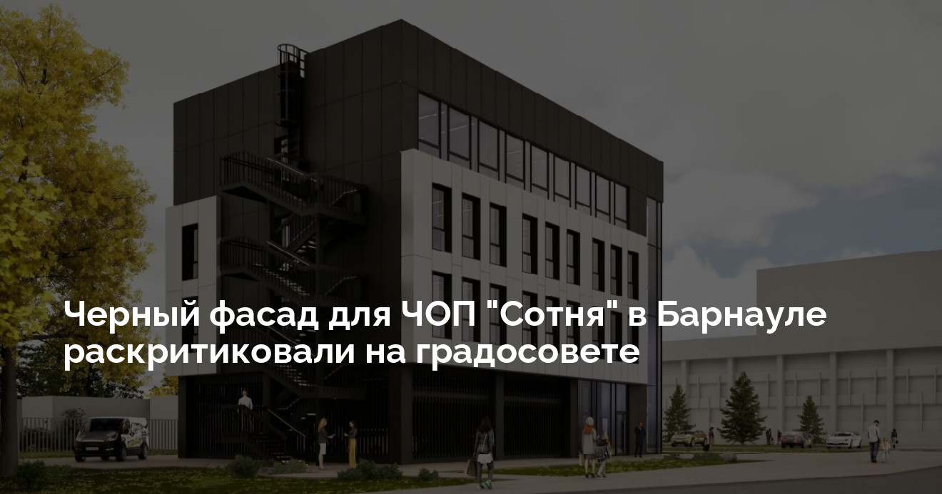 Проект нового здания для частного охранного предприятия «Сотня» с фасадами графитово-черного цвета столкнулся с резкой критикой членов градосовета Барнаула. Строить его планируют на углу улиц Малахова и Германа Титова — напротив светлого здания Дворца культуры «Мотор».