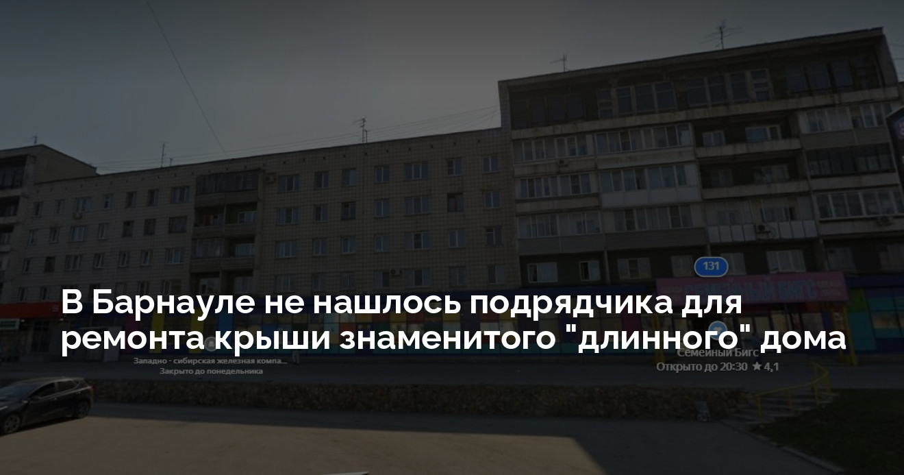 Одна из архитектурных достопримечательностей Барнаула советского периода — многоквартирный дом на проспекте Красноармейском, 131 — снова ждет капитального ремонта. Комитет муниципального заказа города не смог найти исполнителя, который бы восстанови крышу здания.