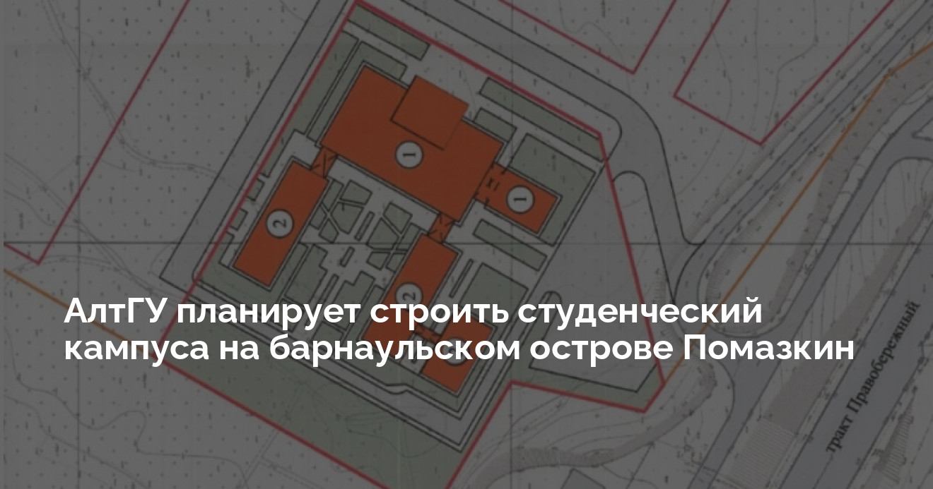 Под студенческий кампус на о. Помазкин выделено 5 га земли. Подготовленный ранее проект планировки предусматривает три общежития, два учебных корпуса, а также дорожки, зеленые зоны и необходимая инфраструктура . Общая площадь застройки составит 357 тысяч квадратных метров. Проект рассчитан на 12 лет: два года уйдет на подготовку документации, еще десять — непосредственно на строительство. Власти рассчитывают, что новый кампус станет одним из самых современных и экологичных мест Барнаула.