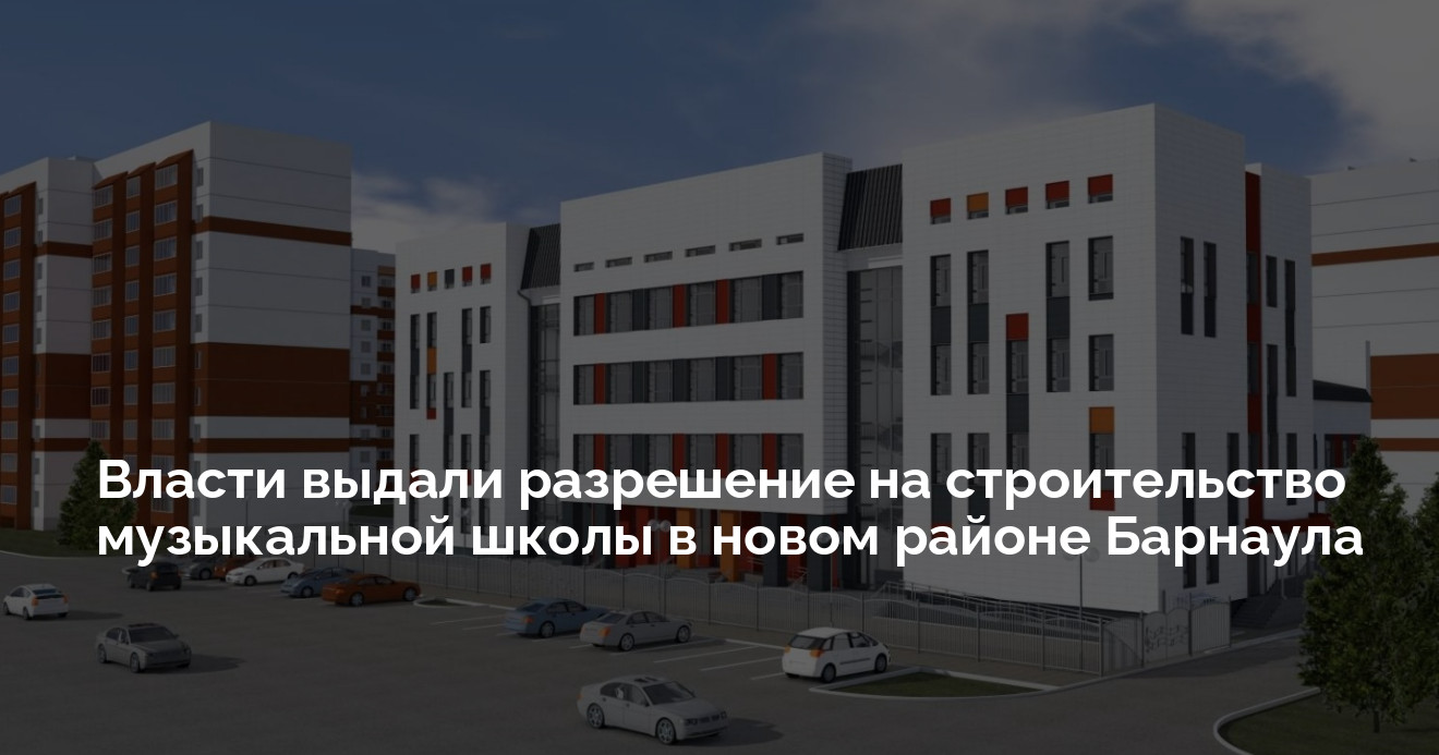 На Северном Власихинском проезде, 18 начинают возводить здание музыкальной школы. Разрешение выдано в начале февраля 2026 года и действительно до 26 сентября 2027 года, сообщается на сайте барнаульского комитета по строительству.