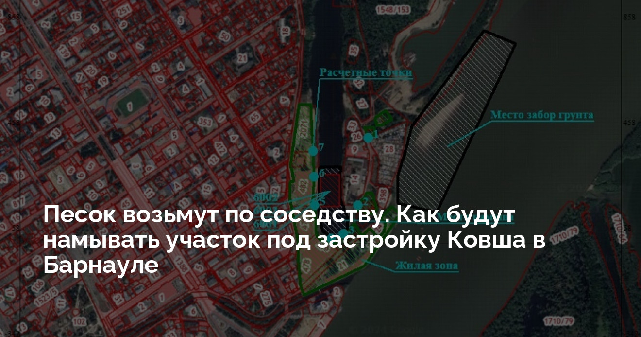 Компания «Генподряд» представила проект по формированию искусственного земельного участка (ИЗУ) в акватории Ковша в Барнауле. Работы будут вестись путем намыва. Грунт для этого возьмут по соседству — из русла Оби.