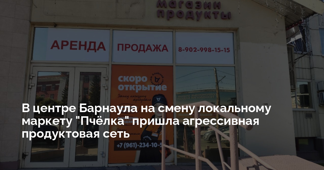 В Барнауле закрылся один из старейших городских мини-маркетов «Пчёлка», который почти два десятилетия работал в центре города. На его месте откроется новый фирменный магазин от «Алейского мясокомбината» — сети, которая демонстрирует стремительный рост в регионе.