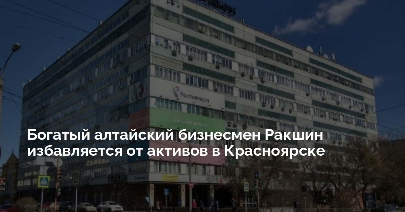 В Красноярске на продажу выставлено большое здание, которое местные называют «Ростелеком». Собственником является компания «Первый», принадлежащая семье бизнесменов Ракшиных — учредителям сети «Мария-Ра». Об этом сообщается на сайте объявлений «Авито».