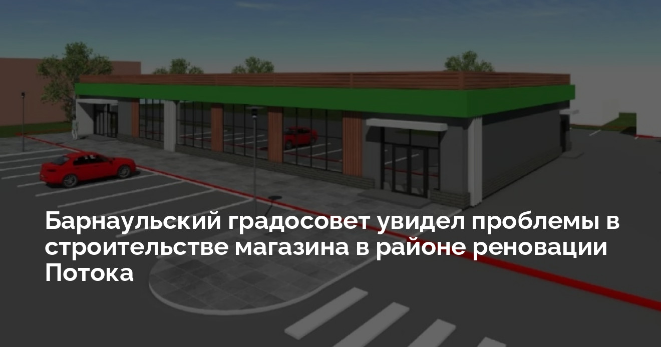 Градосовет Барнаула раскритиковал проект продуктового магазина, который хотят построить в микрорайоне Поток. Авторам эскиза сделали замечания по поводу высоты здания, организации парковок, тротуаров и самой концепции, пишет «Толк».