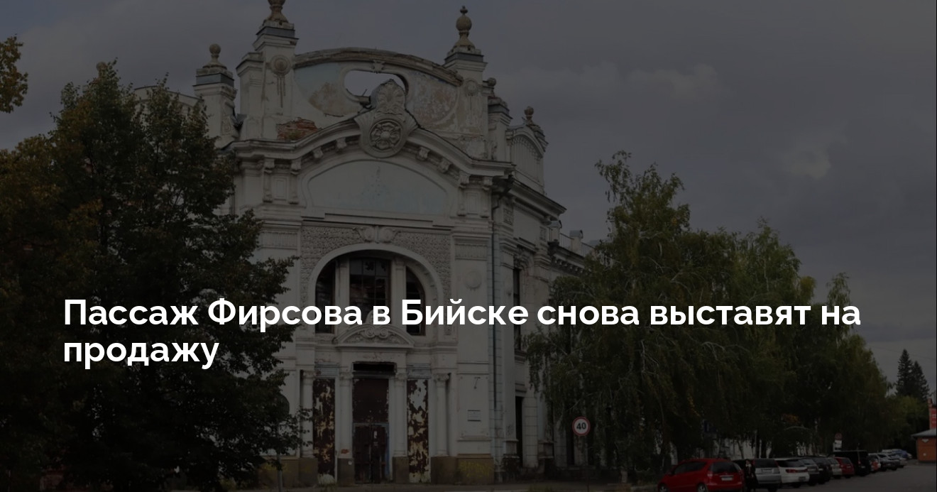 Стоит отметить, что пассаж Фирсова уже продавался частным лицам. В 2015 году победителем тендера стал бийский предприниматель Дмитрий Калинин, который предложил за объект почти 1,5 миллиона рублей. Вместе с партнером Александром Казаковым он планировал начать реставрацию с возведения кровли. На реализацию проекта предпринимателям выделили семь лет. Однако в 2018 году они вернули объект муниципалитету, сославшись на нехватку времени и средств для восстановления.