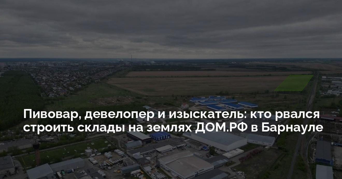 17 октября госкорпорация ДОМ.РФ подвела итоги двух аукционов по продаже земли под склады и производства. На участок в 25 га претендовали компании СЗ "Этюд" (входит в ГК "Алгоритм" Александра Тайчера), АИК (Алтайская изыскательская компания Галины Ивановой) и "ТехноСтрой" (связана с Владимиром Киреевым, представляющим пивоварню "Шпачек" и "Пивлайн"). Торги начались с 6,9 млн рублей, а "Алгоритм" выиграл их, подняв ставку до 14,9 млн рублей.