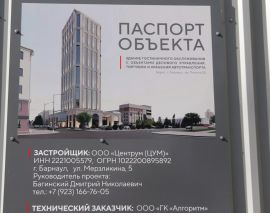 Напомним, в октябре «Центрум» (связан с бизнесом семьи Ракшиных, основателей сети «Мария-Ра») начал работу с третьим по счету генподрядчиком — компанией «СМК-Сибирь» из Новосибирска. Разрешение на строительство здания — гостиницы с торговыми галереями, ресторанами и офисами — действует до мая 2028 года.