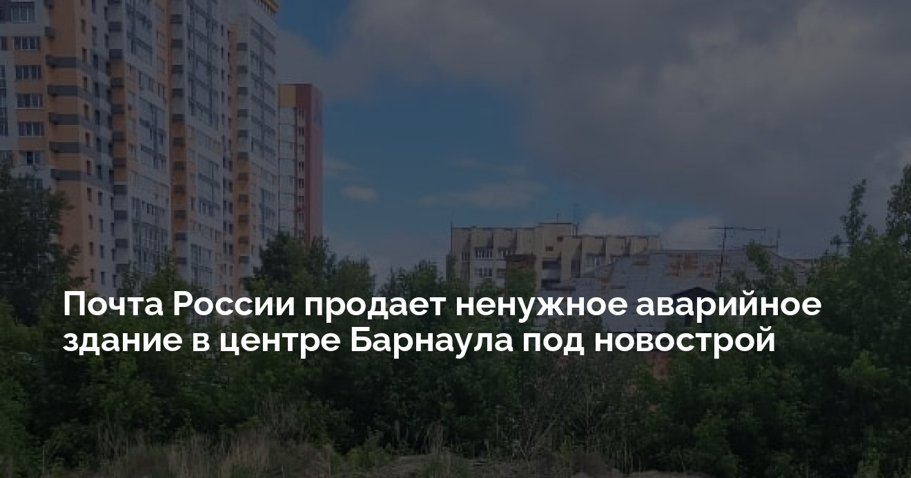 Почта России реализует имущество, не соответствующее целям своей деятельности. 23 января состоится аукцион по продаже здания и земельного участка на ул. Папанинцев, 182 в Барнауле, сообщается на сайте ГИС Торги.