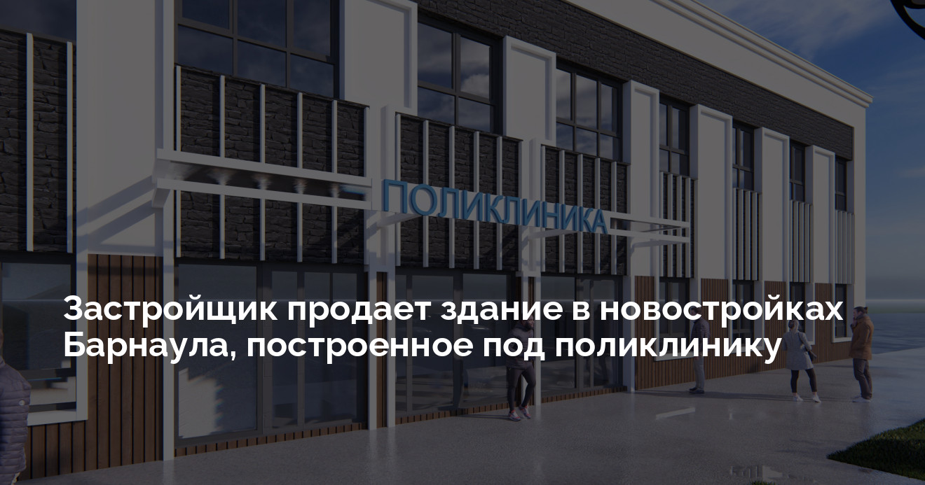 В Барнауле на продажу выставлено новое здание на ул. Солнечная Поляна, 96, спроектированное для размещения поликлиники на 300 посещений в смену. Застройщиком выступила компания «Альфа-Строй», строительные работы выполнял подрядчик «Созидание». Также объект можно забрать в долгосрочную аренду, пишет "Толк".