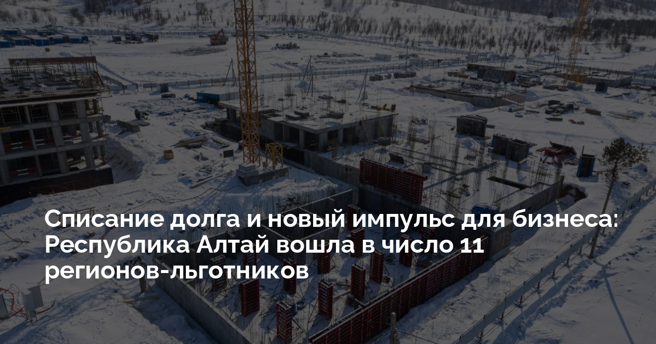 Согласно распоряжению, задолженность по бюджетным кредитам аннулируют 11 субъектам. Помимо Республики Алтай, в списке: Дагестан (700 млн), Ингушетия (446 млн), Марий Эл (1,1 млрд), Тыва (602 млн), Забайкальский край (241 млн), Брянская область (391 млн), Кировская область (1,3 млрд), Рязанская область (2,2 млрд), Саратовская область (1,5 млрд) и Ульяновская область (470 млн). Общая сумма списания — 10,1 млрд рублей.