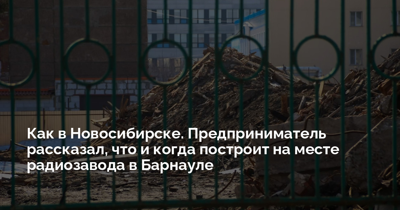 На месте сгоревшего корпуса Барнаульского радиозавода планируют построить коммерческое здание. Часть помещений может быть адаптирована под апартаменты, часть — под офисные помещения. Об этом «Алтайской недвижимости» рассказал руководитель строительной компании «Оптимум» Владислав Рыжков, который выкупил участок на пр. Калинина в Барнауле.