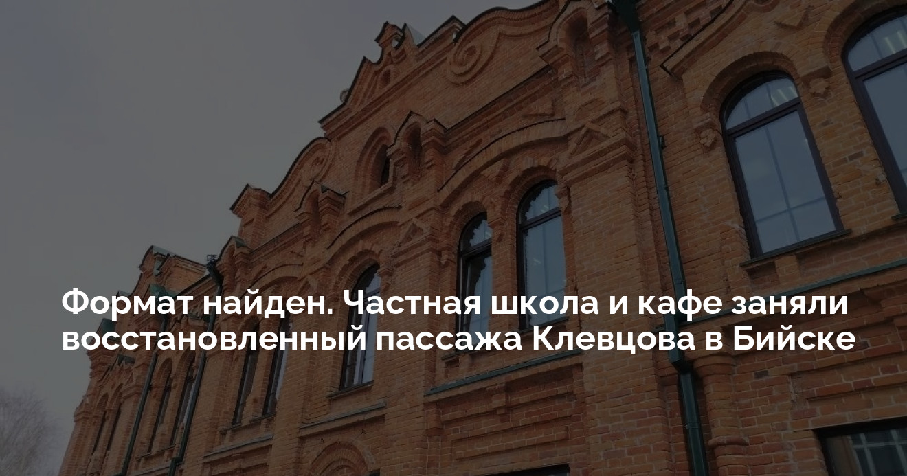 Восстановленный пассаж купца Клевцова в Бийске должен окупиться минимум за 20 лет при условии постоянно занятых площадей. Такую оценку дал один из собственников здания Виктор Долгов. Сейчас в объекте культурного наследия располагаются несколько якорных арендаторов. Памятник был отреставрирован за 100 млн рублей спустя 20 лет разрушения и запустения.