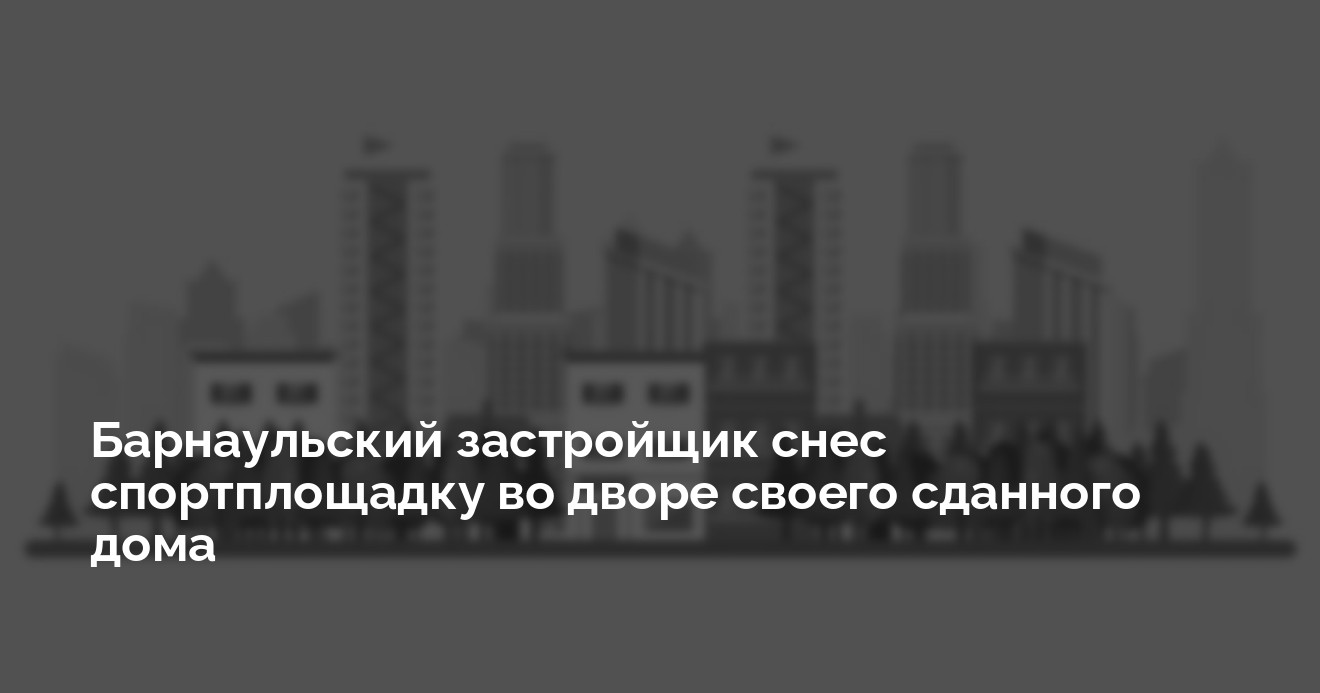 В Барнауле во дворе дома на Змеиногорском тракте, 104 «П»/5 застройщик снес ранее возведенную им же футбольно-баскетбольную площадку. К этому его вынудила активная жительница одного из близлежащих домов, которой почудились в играющих соседях агрессивные наркоманы и алкоголики, а постоянный стук мяча якобы посеял в ее душе чувство тревоги, - пишет ИА "Банкфакс".