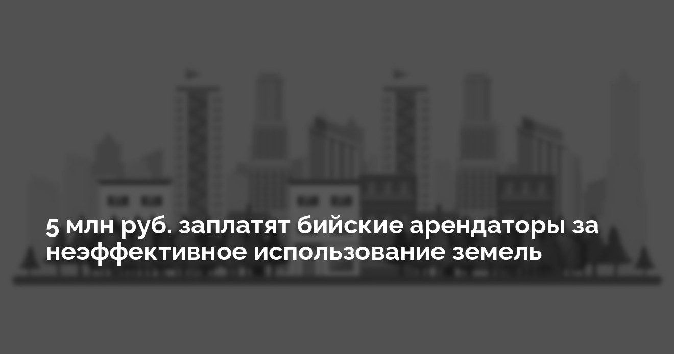 Арендаторы муниципальной земли в Бийске, чья деятельность на выделенных участках признана неэффективной, должны уплатить 5,16 млн рублей. Об этом сообщает газета «Бийский рабочий».