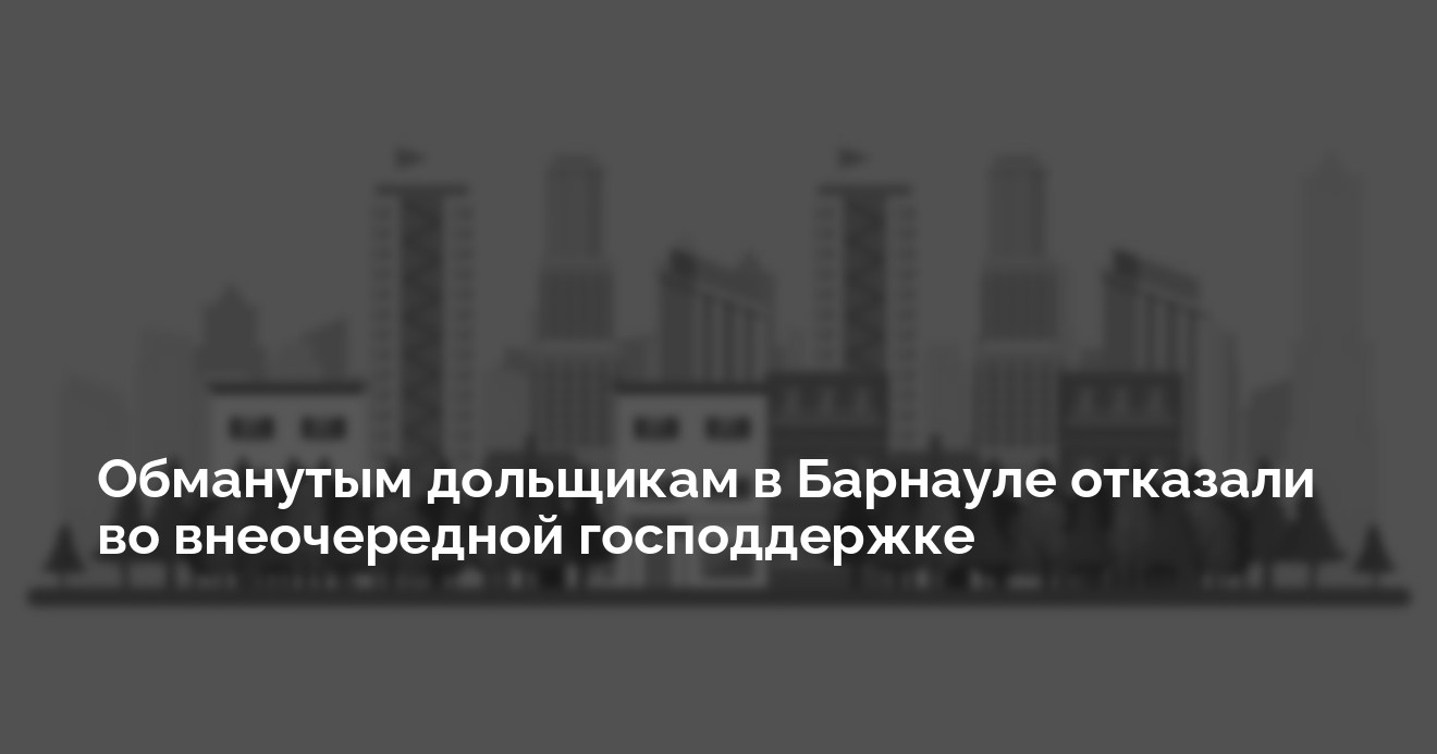 Ранее председатель комитета дольщиков Алтайского края Лилия Белькова рассказала, что дольщики этого проекта оказались разделены на тех, кто включен в реестр кредиторов в деле о банкротстве застройщика, и тех, кто решением суда был признан пострадавшим от действий руководителя строительной компании "Сибирь Звезда". Дольщики, которые не были признаны пострадавшими в уголовном деле, сейчас получают отказы на то, чтобы стать претендентами на получение бесплатных земельных участков.