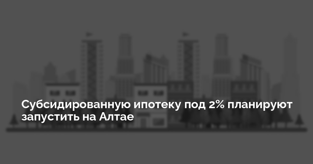 В Алтайском крае и Республике Алтай могут запустить субсидированную ипотеку для молодых семей под 2% годовых. Такая господдержка обсуждается в Правительстве РФ