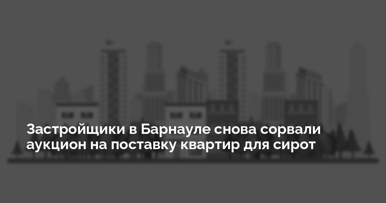 На днях состоялся новый аукцион на приобретение 10 квартир для детей-сирот в Барнауле, но заявок снова не поступило. В Минстрое сообщают, что следующий аукцион собираются проводить в начале ноября, но уже очевидно всем, что этот механизм не работает.