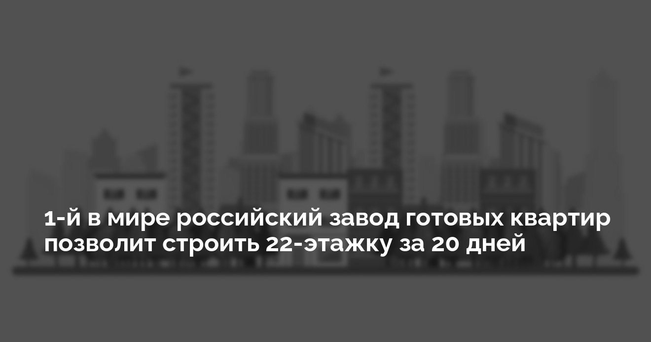 В России построят первый и единственный в мире завод готовых квартир. С его помощью 22-этажные дома можно будет возводить всего за 20 рабочих дней