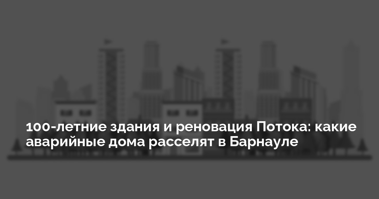 В 2020-м году по плану федеральной программы переселения граждан из аварийного жилья в Барнауле подлежат сносу и реконструкции как минимум 14 многоквартирных домов. Все они имеют по 2 этажа, большинство из них кирпичные и деревянные, лишь несколько блочных. 6 объектов расположено на Потоке (по ул. Глушкова, 20, П. Сухова, 16, Смирнова, 77, 1-я Западная, 49а, Чеглецова, 9, Тимуровская, 54). Также, есть дома на ВРЗ (ул. Хлебозаводская, 12 и Водопроводная, 74), в Центре (ул. Никитина, 96 и Чехова, 14), на Гоньбинке (ул. Советской Армии, 52), в Затоне (ул. Водников, 50), на Горе (ул. Фомина, 62) и Ближних Черемушках (ул. Восточная, 106).