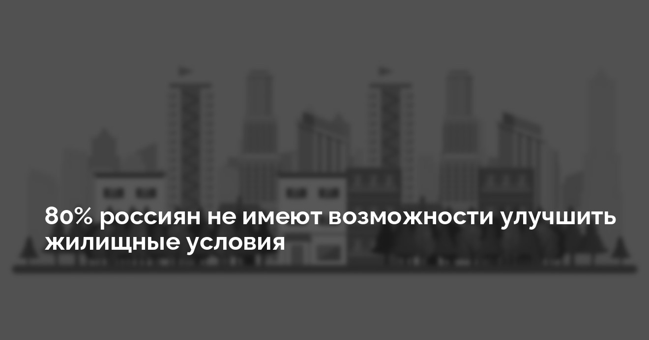 Большинство россиян — 80% — считают, что не имеют возможностей для улучшения жилищных условий. Об этом свидетельствуют данные всероссийского опроса фонда «Общественное мнение», который проводился 24—26 июля среди 1 тыс. человек. Подробности сообщает РБК.