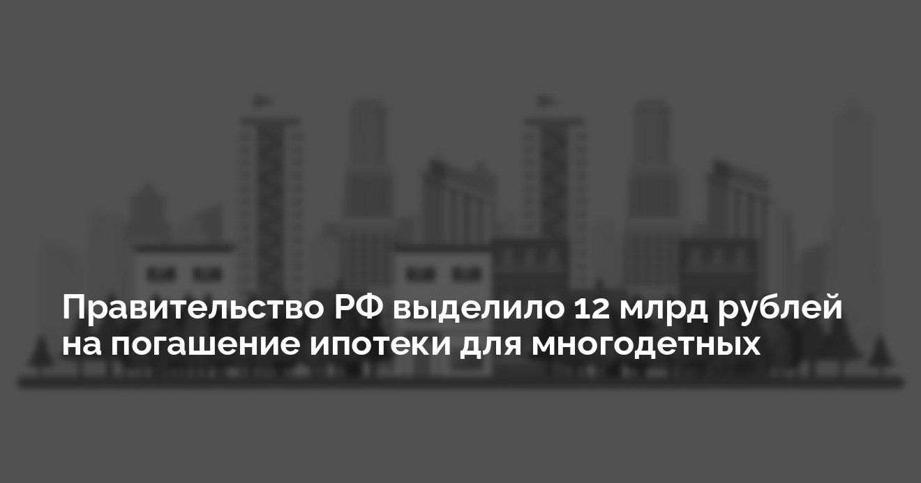 Правительство РФ выделило почти 12 млрд рублей на погашение части ипотеки многодетным семьям