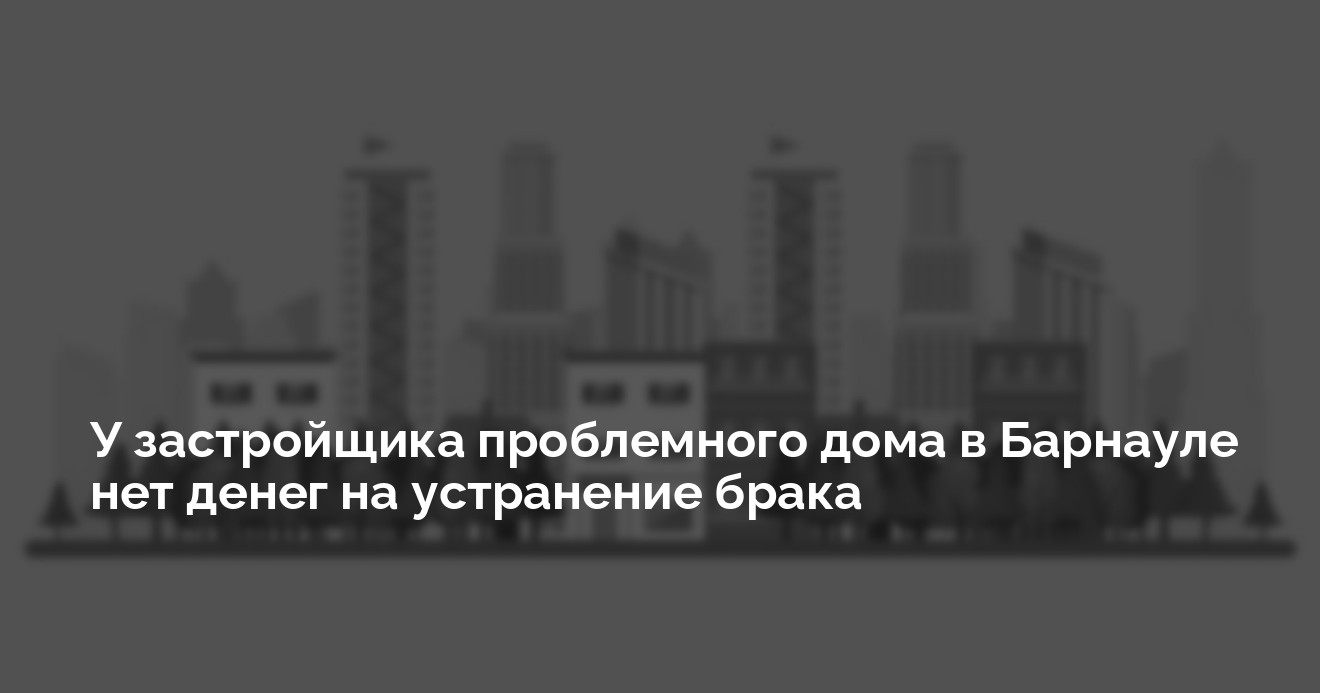 Застройщик недавно сданной проблемной высотки на Павловском тракте, 291 в Барнауле не имеет средств на устранение производственного брака. Хотя и признает, что недостатки там есть и готов исправлять их самостоятельно, даже не предъявляя иски к подрядчикам, потому что с тех нечего взять.