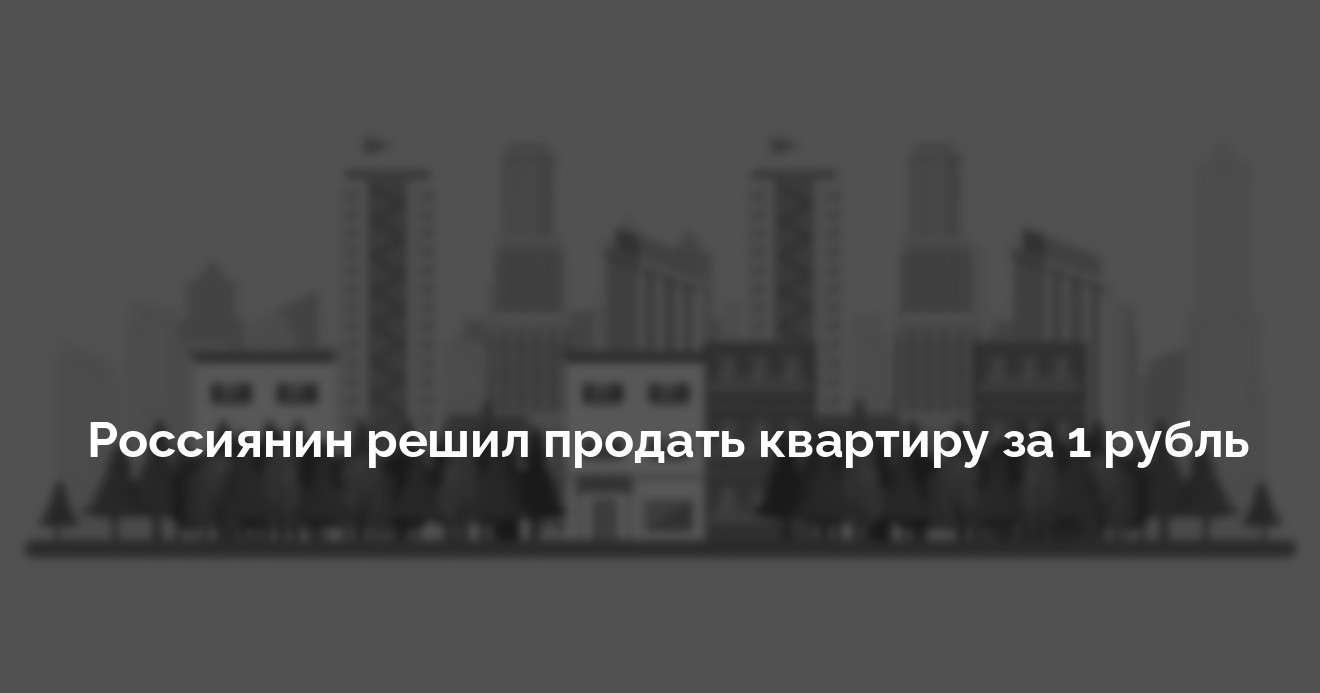 Россиянин решил продать свою однокомнатную квартиру за один рубль из-за ненадобности