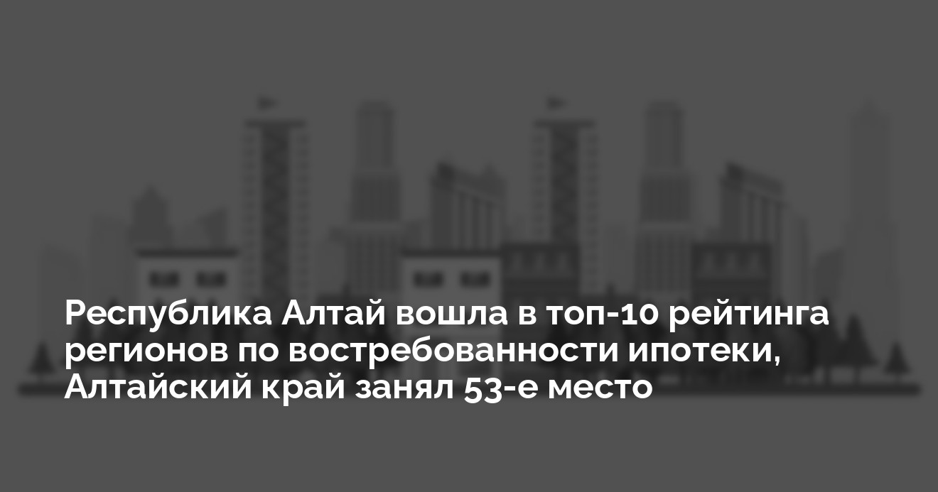 Эксперты оценили соотношение количества выданных ипотечных кредитов к численности экономически активного населения в регионах России. Алтайский край оказался на 53-й позиции из 85 (данные по четырем новым субъектам РФ пока не учитывались), Республика Алтай – на 9 месте. Данные приводит РИА Новости.