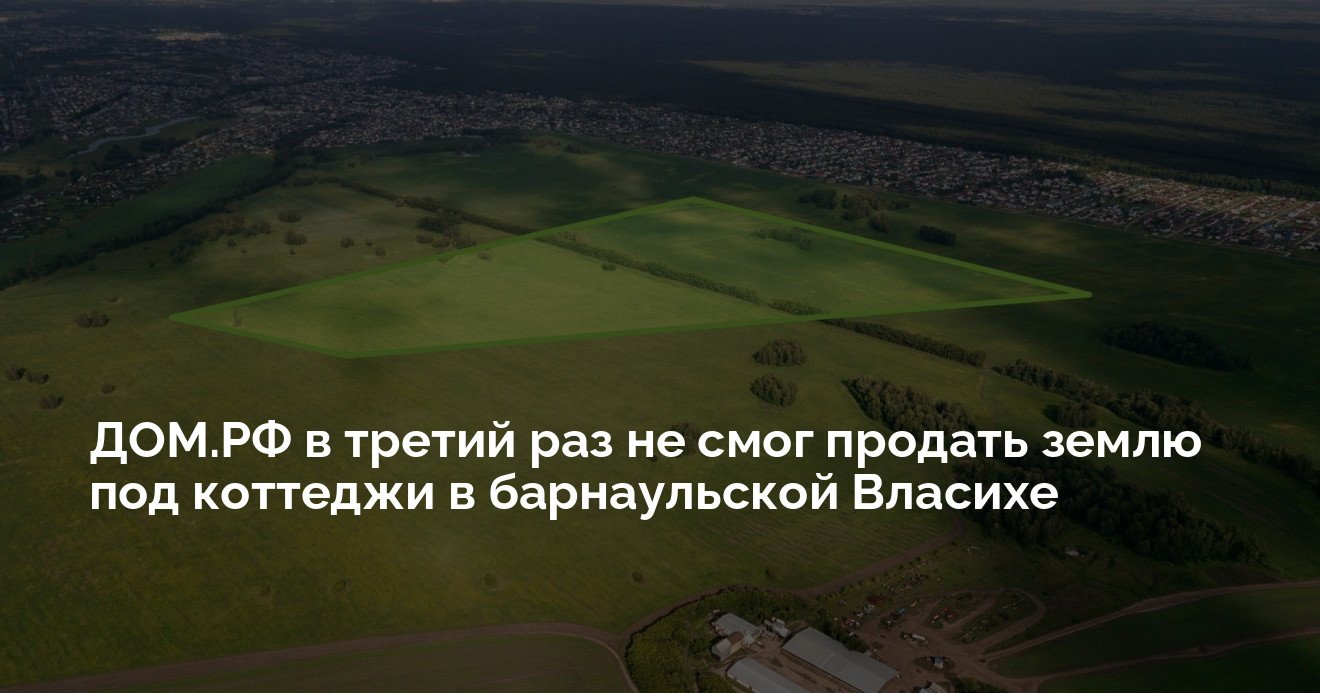 Третий аукцион по продаже 57,2 гектаров под коттеджи в барнаульском поселке Власиха провалился. Предложение ДОМ.РФ снова не заинтересовало инвесторов. Ранее, в августе, с таким же результатом завершились попытки продать 74,7 и 63,5 га в этом же районе.