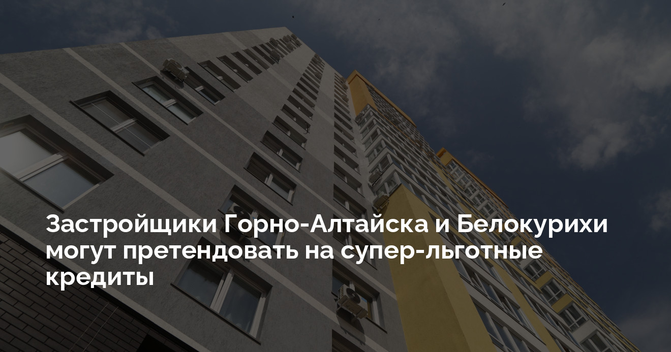 Застройщики малых городов Алтая — Горно-Алтайска, Белокурихи и других населенных пунктов с численностью до 100 тысяч человек — смогут претендовать на льготное кредитование по ставке 12% годовых. Об этом сообщает РБК со ссылкой на сайт правительства РФ.