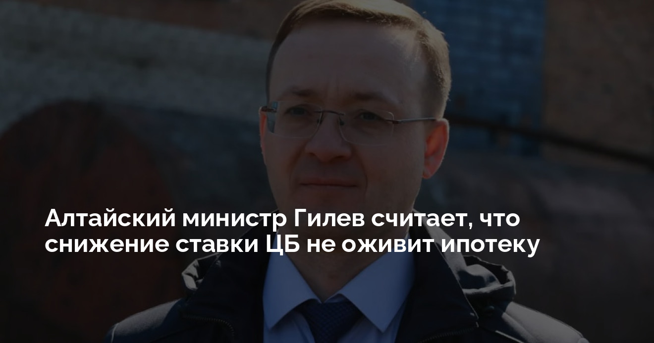 «У нас все ипотечное кредитование осталось только по льготной ставке. Поэтому не важно, какой будет [коммерческая] ставка — 20, 18 или 16%. Будет работать только 7% — то есть льготная ставка. И по 16%, и по 14% тоже не зайдут», — заявил Гилев на заседании правления Союза строителей Алтайского края 23 сентября.