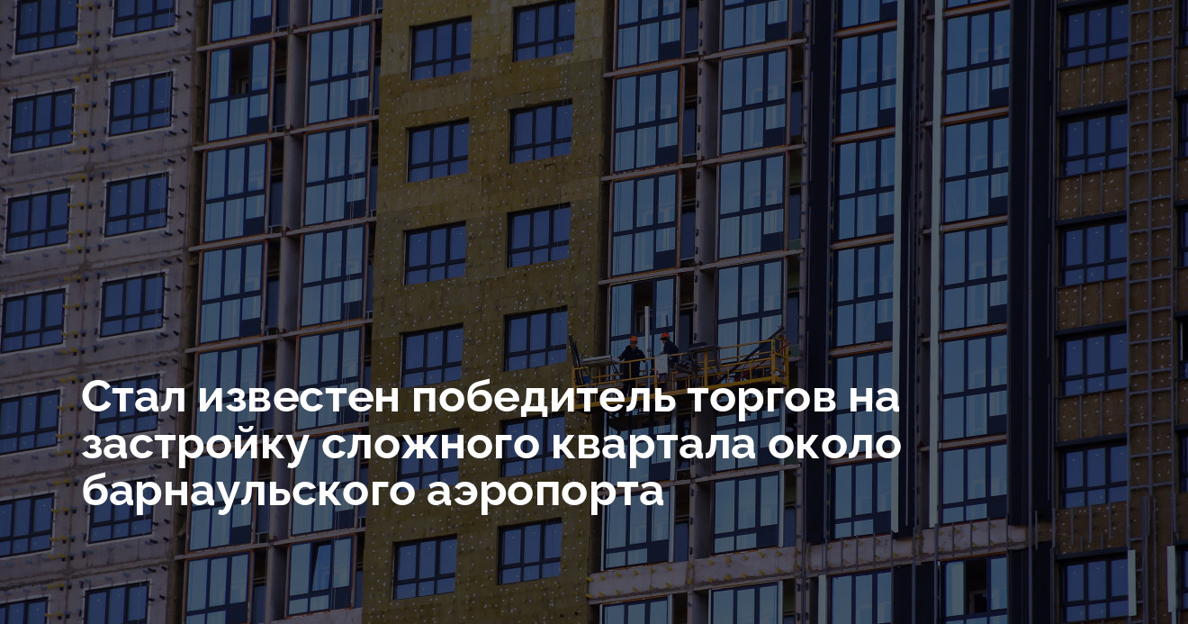 26 сентября состоялись торги на комплексное развитие территории (КРТ) около барнаульского аэропорта. Участок площадью 86 га, который разыгрывала госкорпорация «ДОМ.РФ», достался ГК «Союз» семьи Отмашкиных. Эту информацию порталу подтвердили три источника.