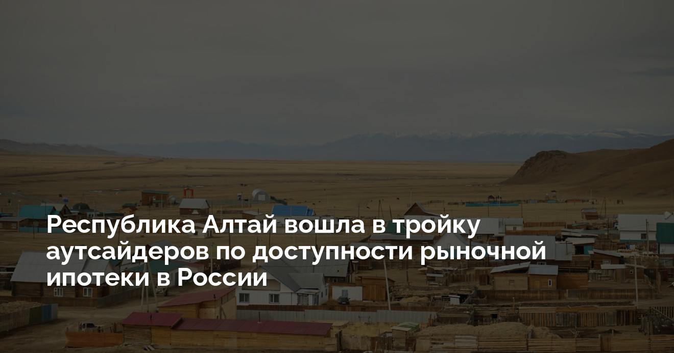 Республика Алтай оказалась в числе регионов с наименее доступной рыночной ипотекой, заняв 82-е место из 85 в рейтинге РИА Новости. Позиции Алтайского края чуть выше.