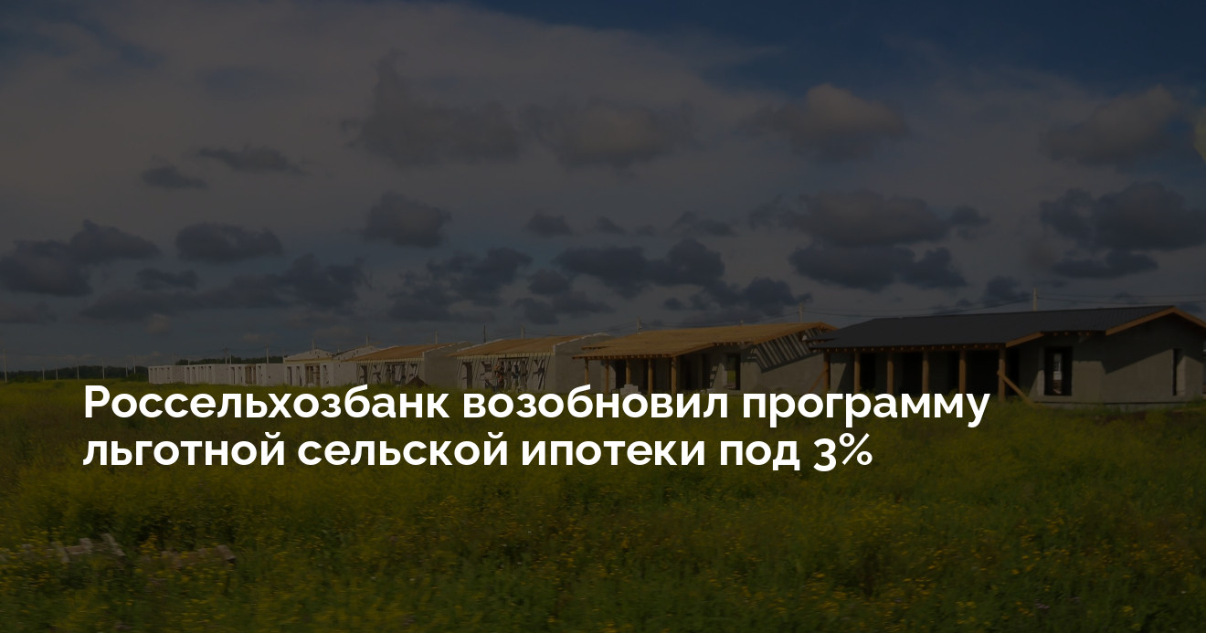 Россельхозбанк возобновил выдачу сельской ипотеки с льготной ставкой 3% годовых. Как сообщили в пресс-службе кредитной организации, программа вновь доступна для определенных категорий заемщиков.