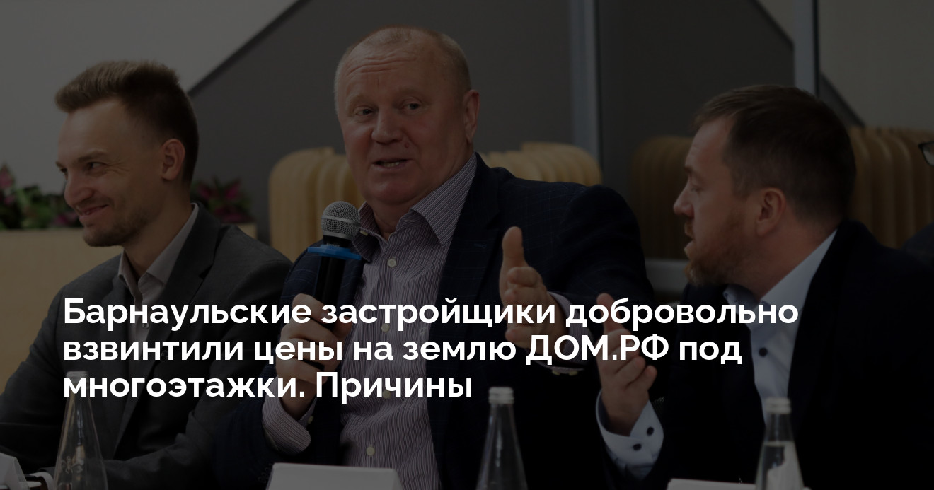 Барнаульские девелоперы в ходе конкурентной борьбы многократно повысили стоимость земельных участков, выставленных на аукцион госкорпорацией ДОМ.РФ. При этом они признают, что условия будущего строительства, включая возведение социальных объектов, не проработаны, что может существенно увеличить итоговую стоимость жилья.