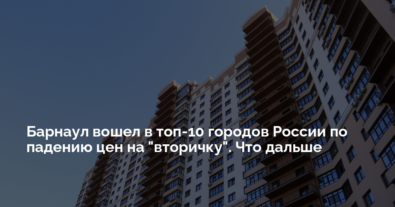 Рынок «вторички» в Барнауле просел: город в топ-10 по падению цен. Квадратный метр подешевел до 129,4 тыс. рублей, и коррекция продолжится
