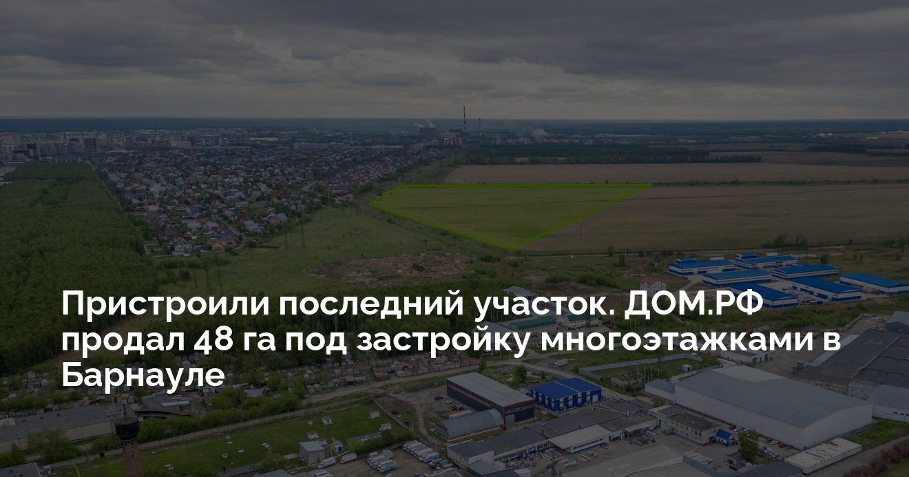 Госкорпорация ДОМ.РФ завершила серию аукционов на комплексное развитие территории в районе барнаульского аэропорта. Предпринимателям предложили беспрецедентные 403 га земли. Накануне покупатель нашелся на последний участок площадью 48,7 га. Аукцион при этом не состоялся, так как заявитель был всего один.