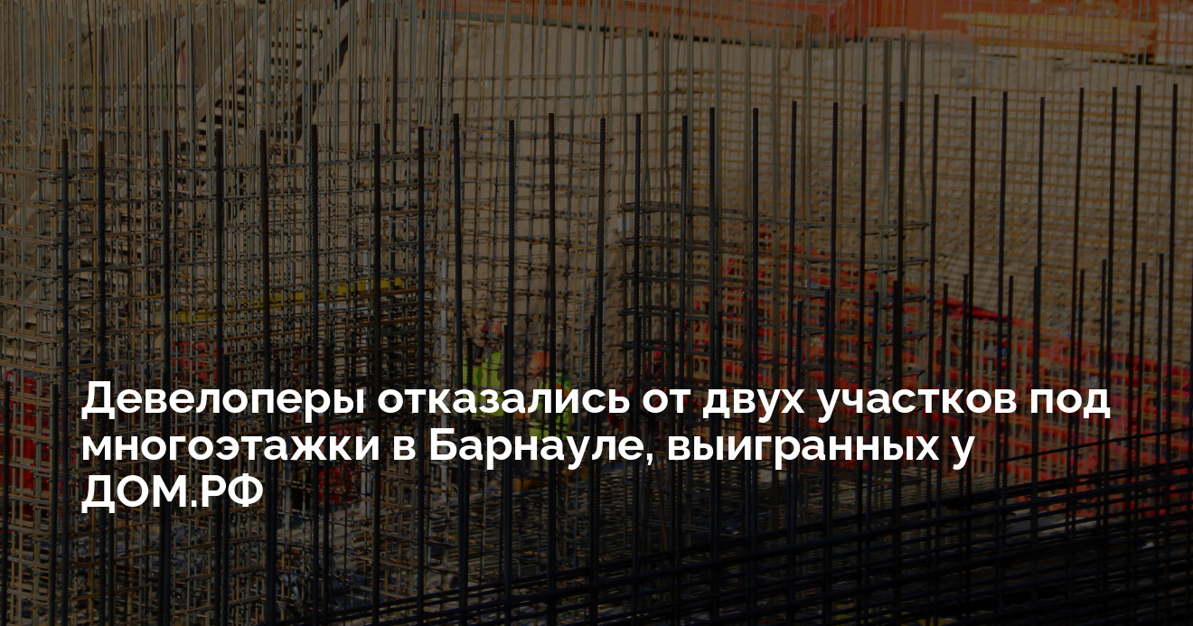 Девелоперы, победившие на аукционе по строительству многоквартирных домов в Барнауле, отказались от подписания договоров на два крупных участка с госкорпорацией «ДОМ.РФ». Об этом сообщили участники рынка. Это означает, что лоты снова будут выставлены на аукционы.