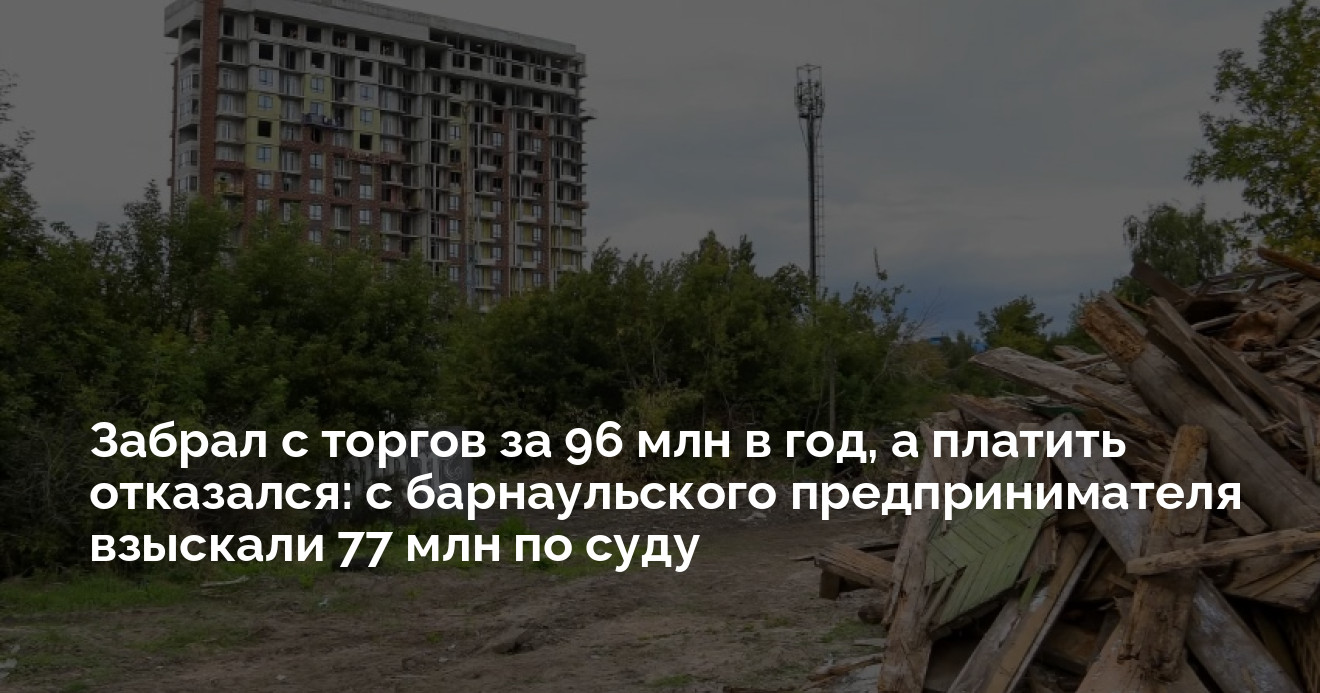 Суд обязал бизнесмена, который дорого приобрел участок под многоэтажку в центре Барнаула, заплатить по счетам