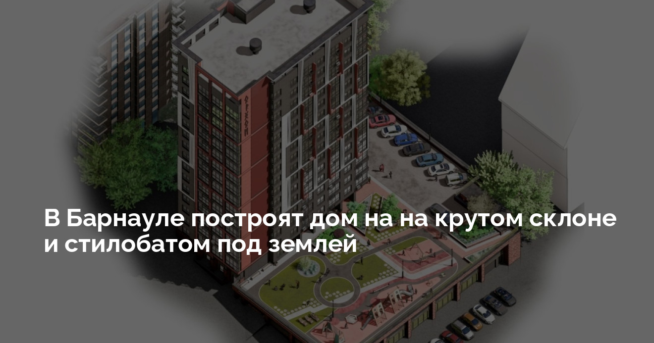 В Барнауле на одном из самых сложных участков — перекрёстке улиц Ядринцева и Папанинцев — планируют возвести 16-этажный жилой дом. Архитектору Сергею Черепанову пришлось разработать нестандартное решение для склона с перепадом высот в 9 метров. Из-за этого значительную часть стилобата здания фактически закопают в гору, рассказал он на градосовете 12 декабря.
