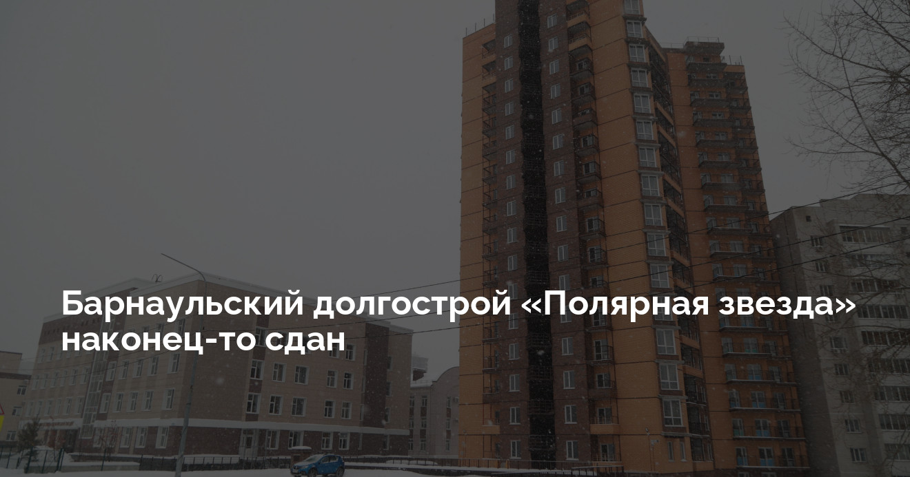 Передача квартир 230 дольщикам начнётся 20 декабря. «Полярная звезда» — уже второй проблемный объект в Барнауле, который компания «Мой Дом» вывела из долгостроя. Ранее, в начале 2025 года, ей удалось ввести в эксплуатацию ЖК «Жемчужина» на Партизанской, 76, также замороженный на годы.