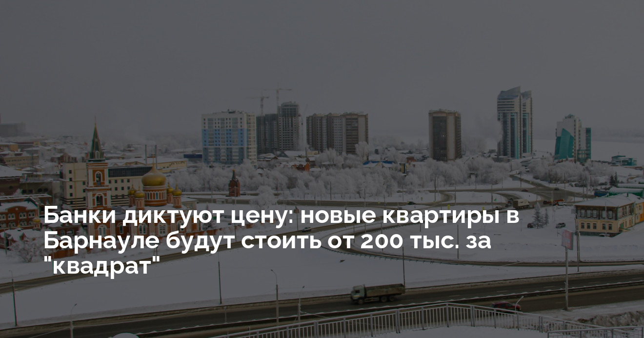 По данным портала «Мир квартир» на середину декабря 2025 года, средняя цена квадратного метра в Барнауле составляет 156 319 рублей. Годовой рост цен достиг 9,5%.