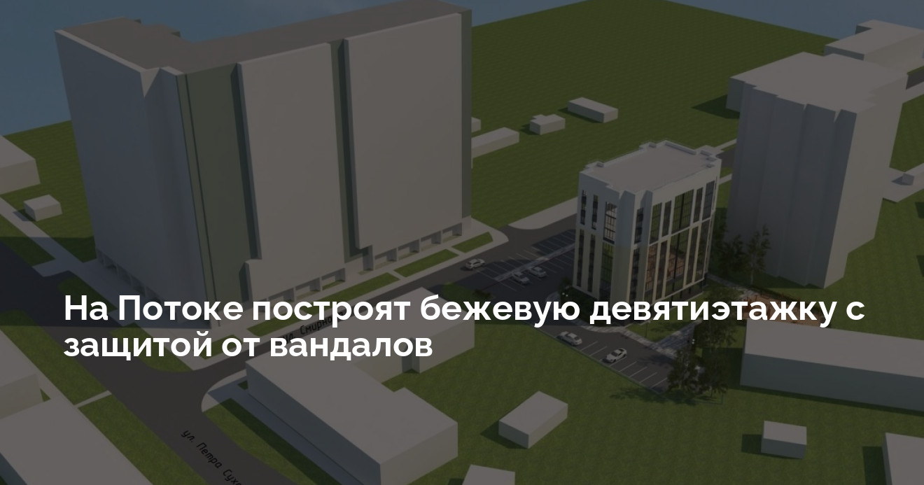 Новостройка расположится в квартале на Потоке, по соседству с двухэтажкой и 16-этажным зеленым домом. Фасады решено сделать бежевыми или в тон соседнему зданию: снизу — антивандальная штукатурка, сверху — декоративная.