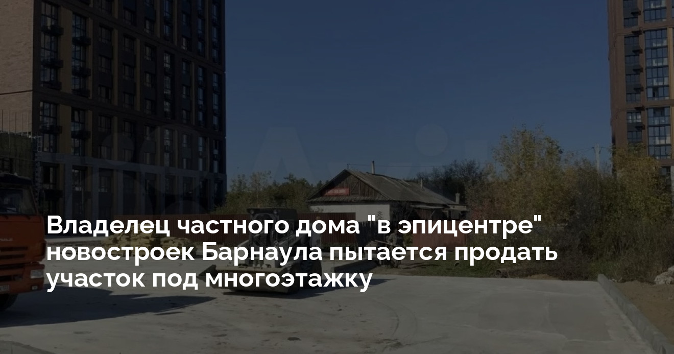 Собственник участка в центре новых высотных кварталов на ул. 6-я Нагорная ищет покупателей. Он предлагает 18 соток земли со старым домом, где, по его словам, можно построить многоквартирный дом. Цена сотки — 1,37 млн рублей, всего лота — 28 млн. Почему предложение не заинтересовало девелоперов, которые уже возводят здесь дома, в объявлении не уточняется. Однако «Алтайская недвижимость» нашла одну из версий.